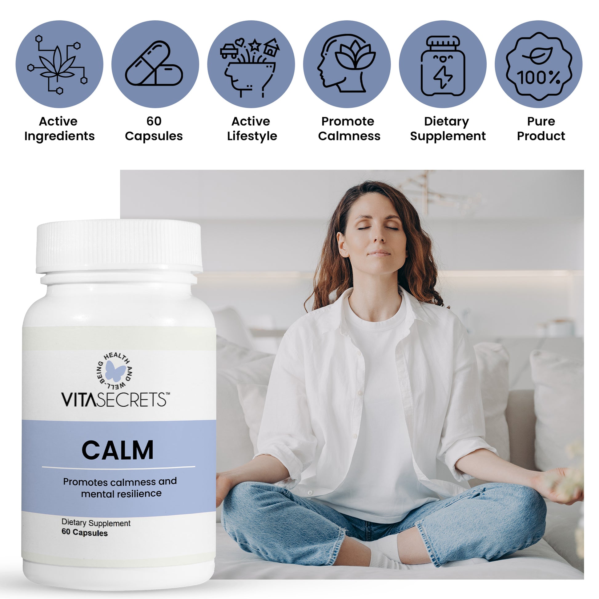 Embrace a calmer, more resilient you with CALM, a natural dietary supplement meticulously crafted to navigate the stresses of modern life. CALM offers a potent blend of Ashwagandha, L-Theanine, Saffron, and other scientifically researched ingredients, providing a natural pathway to manage daily stress, promote calmness, and support overall mental well-being.