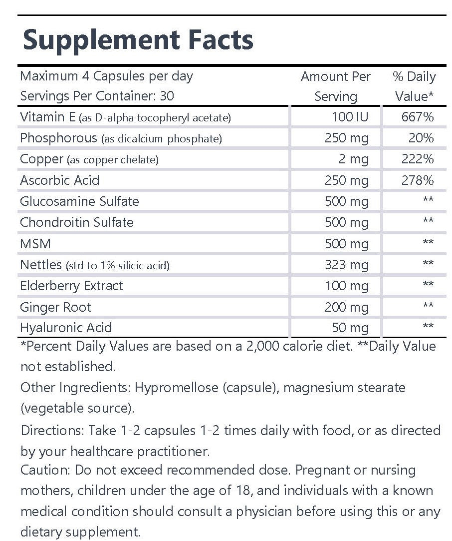 The complete list of what is in each maximum daily serving of RSI is listed in the Supplement Facts found on this page. We have also published a number of blog articles related to improving joint health on our site.